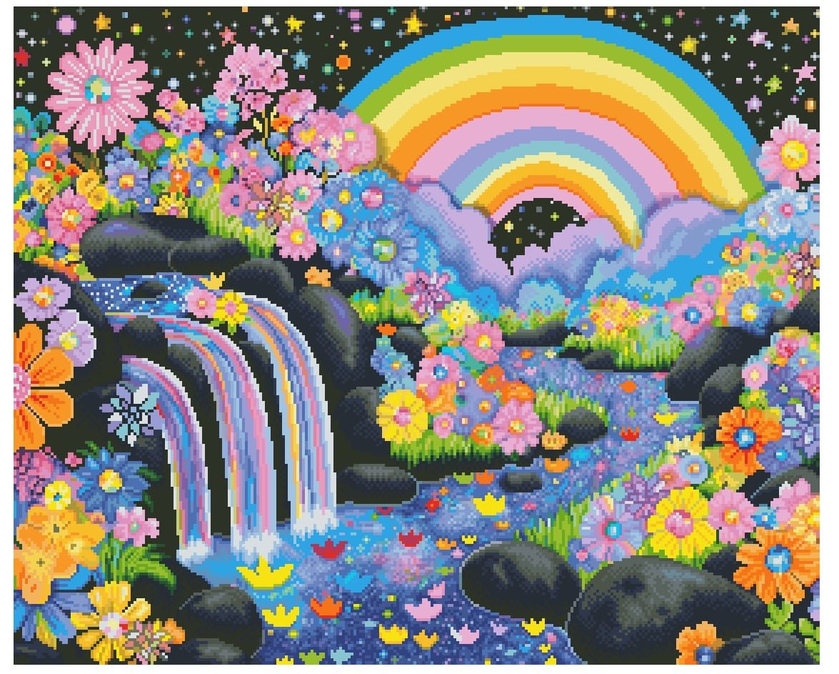 The large canvas features 68 colors, including 3 AB drills and 3 Diamond Dust Drills for extra sparkle!