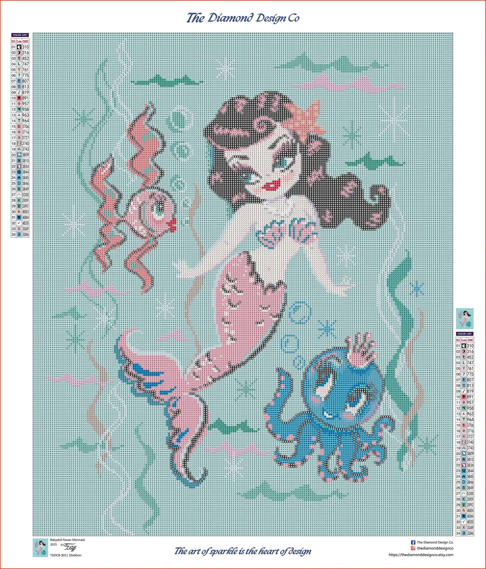 The large canvas features 34 colors, including 3 AB drills and 4 Diamond Dust Drills for extra sparkle!
