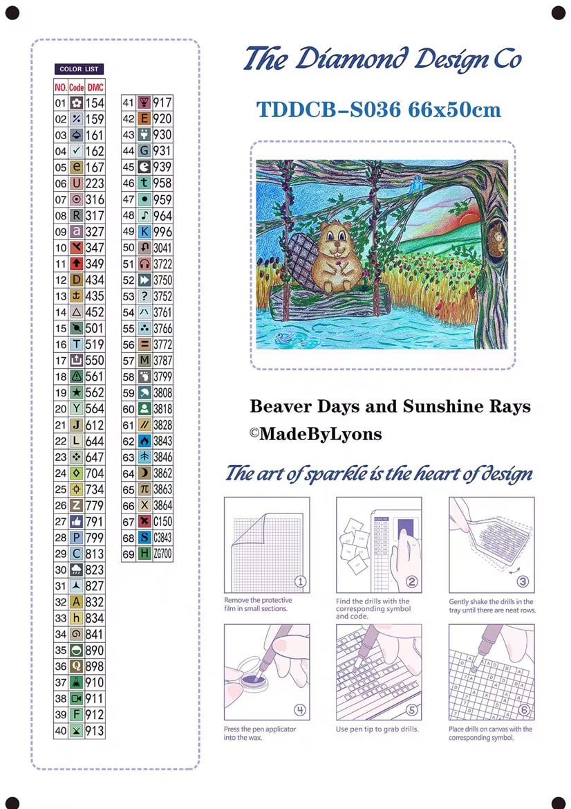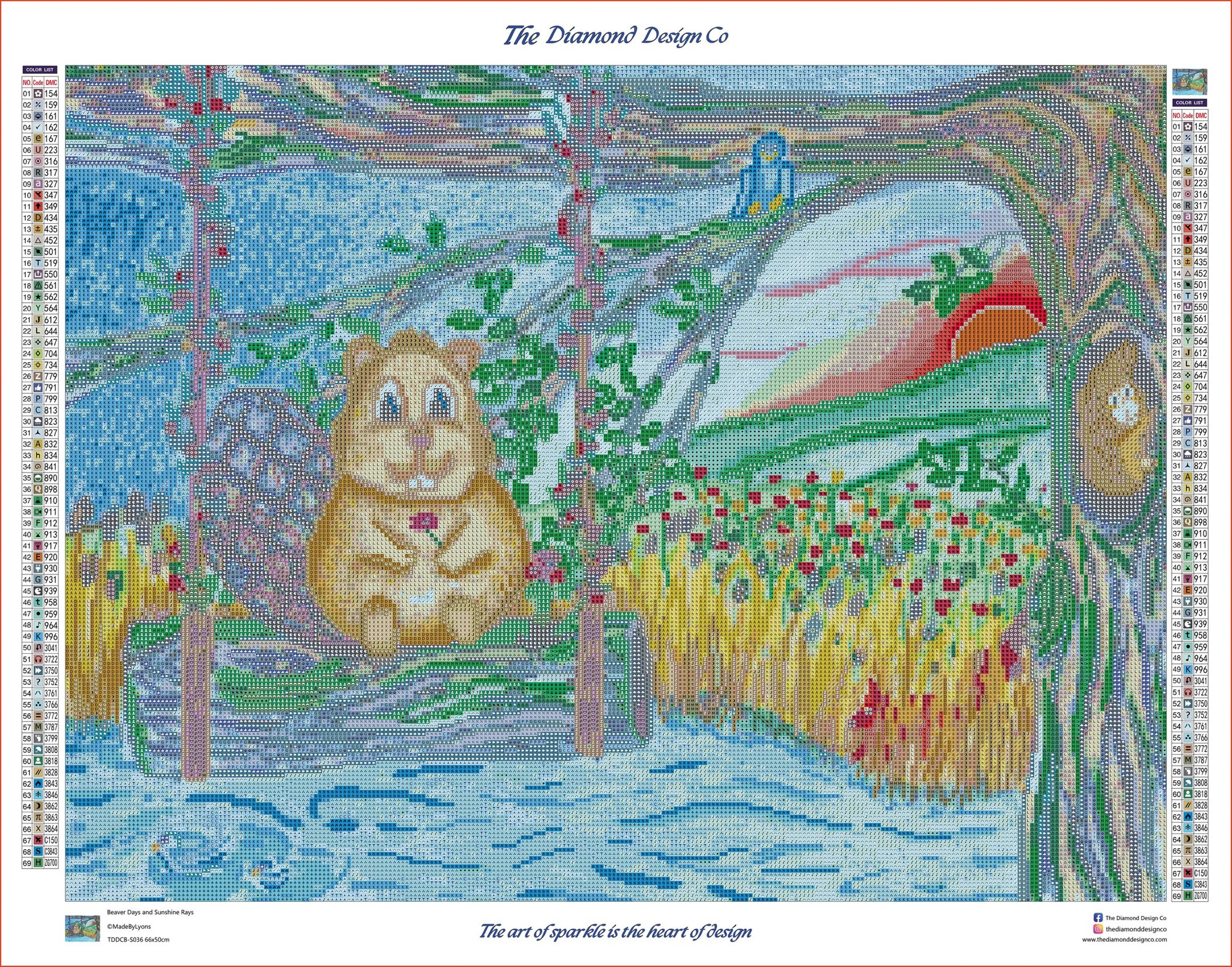 The large canvas features 69 colors, including 2 Crystal Drills and 1 Diamond Dust Drills for extra sparkle!