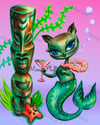 Merkitten with Tiki Full Size Diamond Painting by Miss Fluff